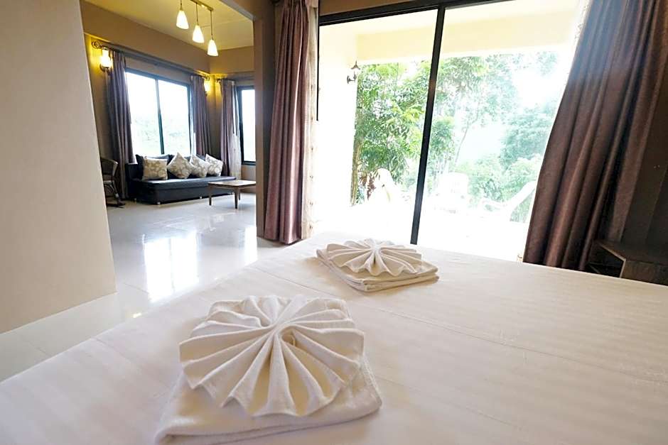 This villa features a separate living room and a private terrace with views of natural scenery.